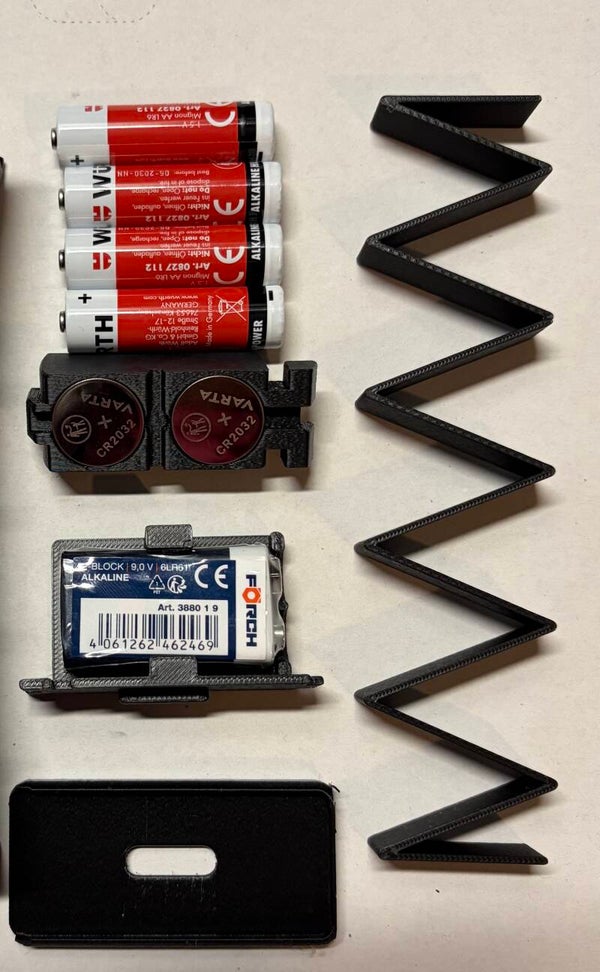 6x AA Batterien / 2x Knopfzelle / 1x 9V Block Batterien darin Platz finden.